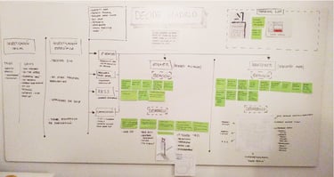 Once the Problem Statement was defined we proceeded to map the gathered information to solve our challenge. We mapped our pains and possible ideas in several blocks to help us visualize which solution was the best at covering the user's pains.
