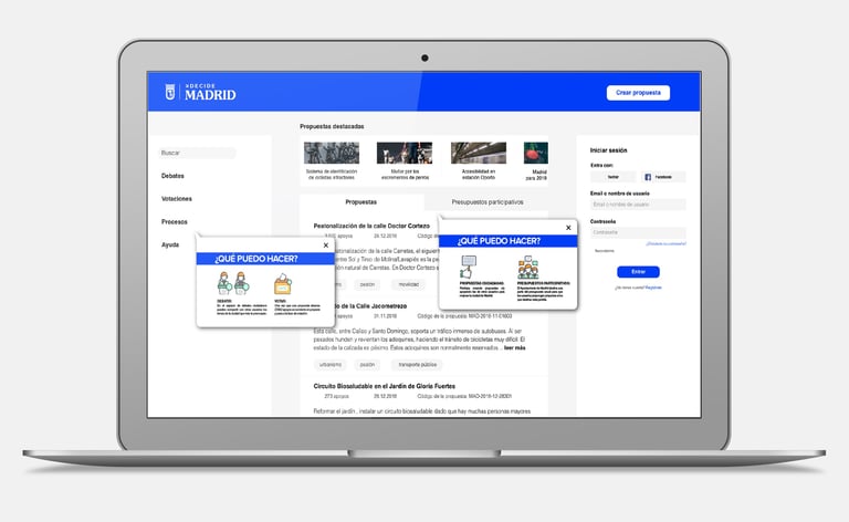 On the other hand, implementing of the system of mini communication campaigns as well as the interactive voting experience, Decide Madrid will achieve greater brand awareness and enable users to discover the platform and the citizen's proposals in an intuitive and enjoyable way. Therefore, these proposals will bring great benefits to the Decide Madrid project, which will see its brand image and digital positioning improved.
