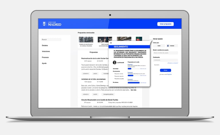 Decide Madrid is an online platform promoted by the city council that enables citizen participation in proposals and municipal budgets.