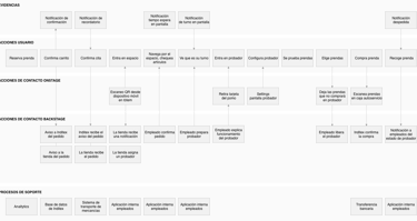 We tested our service concept twice with target users to validate our design. The first round we prepared a test concept using the Wizard of Oz methodology with a low fidelity prototype. We iterated our design taking into consideration the feedback received and we prepared a high fidelity prototype to test our IA proposal and our UX copies, asking our users to complete simple tasks using the app to measure adding to cart and booking a fitting room related tasks.