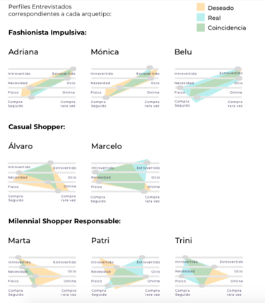 We also identified distinct shopping pattens and tendencies, which led us to differentiate users between necessity and leisure, tendency to buy digitally or physically and purchase frequency. As a result we identified these three main user personas: