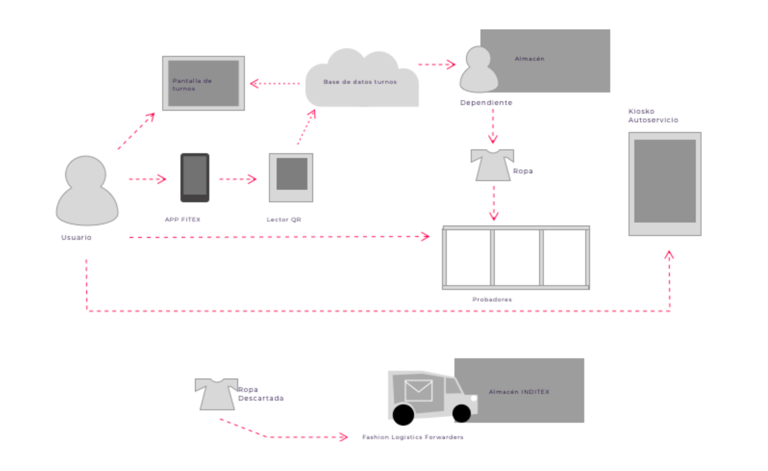 From a business point of view, FitTEX is a profitable and modular service to locate according to consumption demographic data, which takes advantage of the transport network, the ease of inventory, the introduction of premises with fixed income and few staff. It also alleviates pains such as the elimination or partial reduction of online returns and the consequent return shipment, and to online order logistics, both for the transport network and for store employees. On the other hand, it generates direct user gains, such as a greater influx of online purchases, greater user segmentation and personalization of the shopping experience, and the reduction of waiting times.